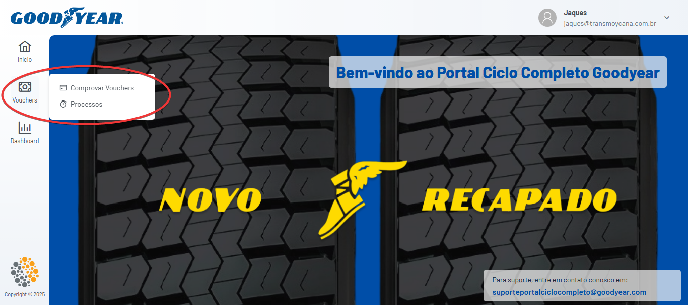 O Portal Ciclo Completo Goodyear é um site que visa registrar todas as recapagens de pneus feitas com bandagem da Goodyear a fim de obter crédito em compras de pneus da marca. Esses créditos são concedidos através de vouchers, que são obtidos fazendo upload de notas fiscais de serviço referentes a recapagens de pneus e informando a quantidade de reformas com bandagem Goodyear.