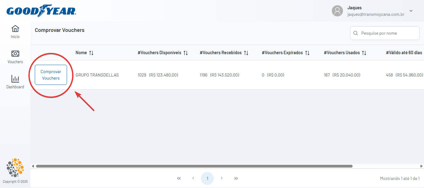 Faça login, clique em “Vouchers” e depois em “Comprovar Vouchers”