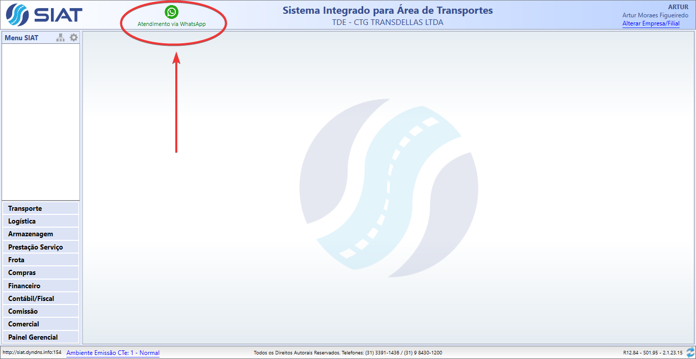 Caso o programa não esteja se comportando da forma que deveria, talvez seja necessário entrar em contato com o suporte. Ele pode ser acionado clicando em “Atendimento via WhatsApp”, na parte superior da tela. Também é possível entrar em contato através do telefone (31) 8430-1200.